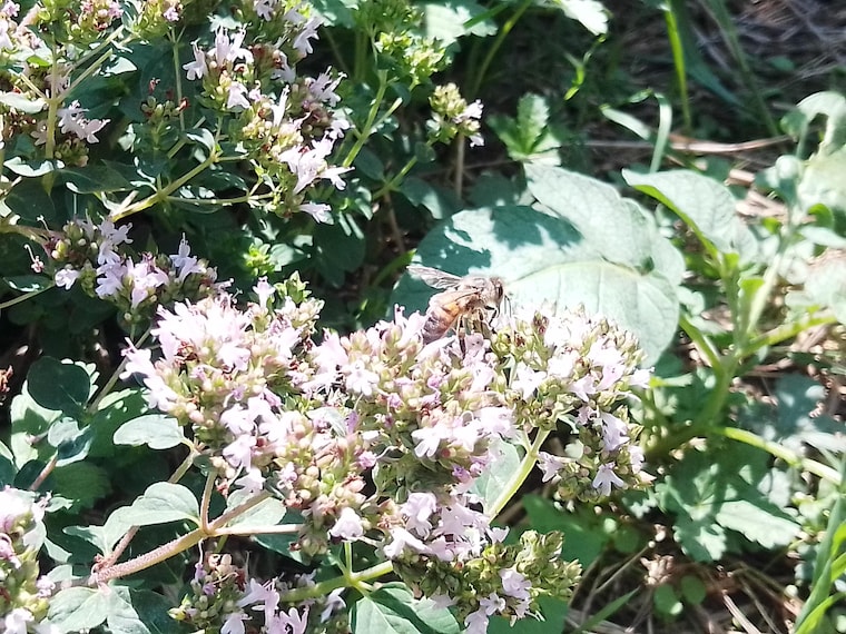 Our bees love the oregano – pure nature in our permaculture garden.