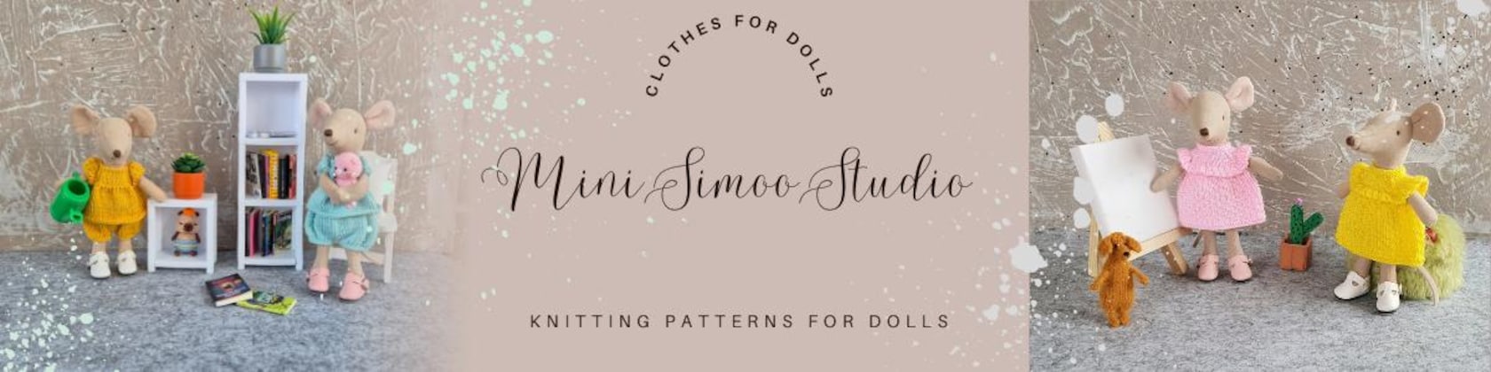 My name is Valentina, and I design and knit amigurumi toys (you can visit my first store, MiniSimoo.etsy.com), as well as knit clothes for dolls, Mia Nines d'Onil, Paola Reina, and Maileg Mouse. A few years ago, I first saw Paola Reina dolls and absolutely fell in love with them! When I got my Violet, I started designing and crocheting and knitting tiny outfits for her. Now I continue to knit and sew seamless sweaters, overalls, dresses, and hats. But if you're interested in creating your own doll outfits, visit my store, MiniSimooStudio.etsy.com, to find knitting patterns.