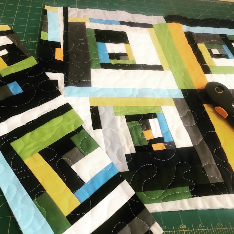 I have not entirely abandoned traditional quilting. For much of its history quilting was one of the few artistic outlets and voices for women who had no voice. In my work you will see a nod to tradition. I love playing on the log cabin block. Many times I keep the traditional flying geese block as it was but use more modern fabrics.