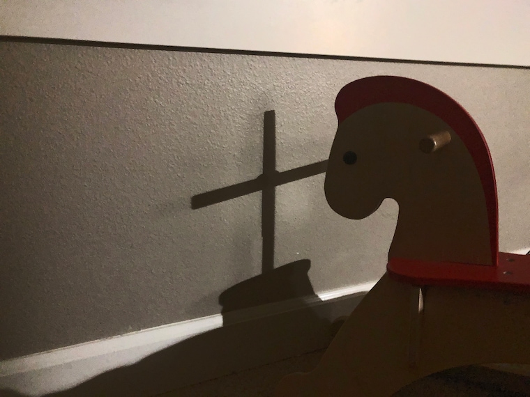One night, as we were putting our son to bed, he suddenly exclaimed, “Mommy! Daddy! There is a cross!” He was pointing at the wall. At first, we saw nothing, but he kept insisting. Upon closer look, we realized the shadow of his rocking horse was cast in the exact shape of a cross because of the way the toy was angled. In that moment, we felt God was revealing His presence to us through our son’s eyes—right there, in the midst of the quiet darkness.