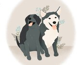 5 out of 5 starsMolly created a beautiful print of my sister in law’s two dogs, one of whom had just been put down after a long happy life. Using only images from my SIL’s instagram, she captured both pups so beautifully! And then she made meaningful choices for the floral touches in the background that speak to the family’s life with their pets. And she did it on time with great communication. Thank you Molly!