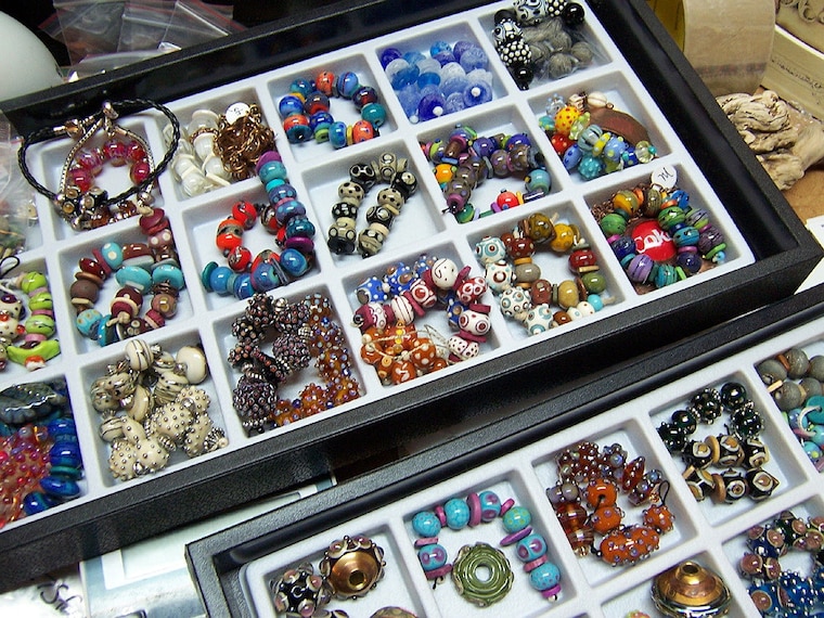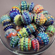 My Etsy shop started out as a place where jewelry designers and lampwork bead collectors could purchase unique hand made glass beads. I enjoy the whole process very much, from purchasing all the wonderful American, Italian, and German glass from various manufacturers, to the design stage where I jot down ideas and color combinations that I have been working on, and then on to the torch where I get to apply my concepts to glass or sometimes take off on another totally different tangent!