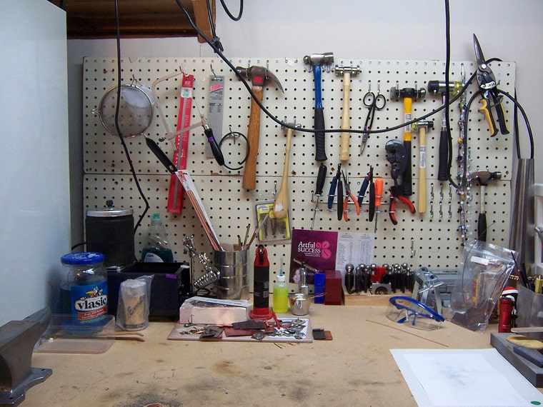 Along the way, metalsmithing became a necessary addition to my own jewelry making process. I work mostly in copper – much of it is recycled. I find copper easy to work with and I like the way it's color compliments my style of lampwork beads. I have been acquiring the tools of the trade and have broadened my scope from just making lampwork beads into making my own line of copper components for use in my own jewelry which I now sell in my shop, but mostly at juried art fairs around our city and near by.
