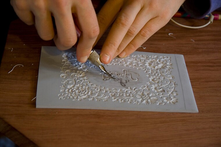 Experienced local printer who runs his own print shop, working with an antique Chandler & Price platen press and a larger Heidelberg platen press.