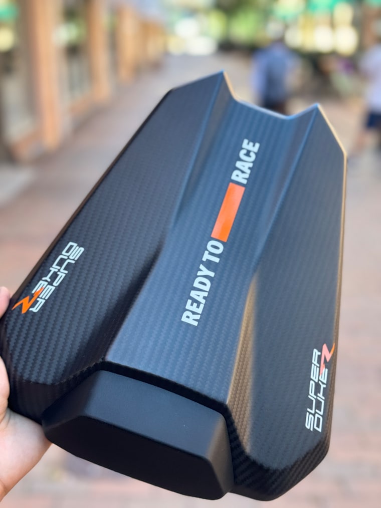 Custom vinyl decals for the carbon fiber seat cover for my KTM Super Duke 1290 R.