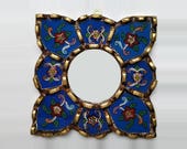 2. The glass is turned and the background is painted with blue enamel, leaving free the interior of the design.