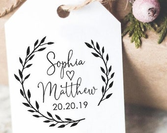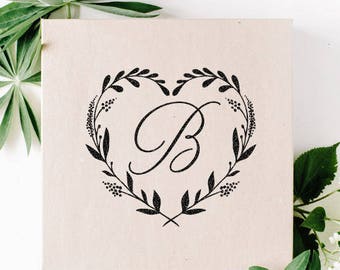 Custom wedding Stamp, Heart Wreath Monogram Stamp, Save The Date Stamp, Wedding Invitation, Rubber Self Inking Stamp, Family Monogram Stamp