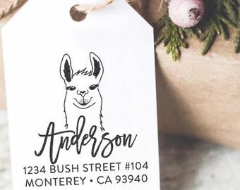 Llama Return Address Stamp Personalized Rubber Stamp Unique Holiday Housewarming Birthday Gift Idea Custom Address Rubber Self Inking Stamp