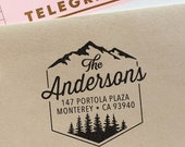 Custom Address Stamp with Mountains, wedding, housewarming, christmas gift, rubber stamp, return address stamp, stocking stuffer