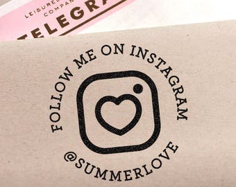 Custom Social Media Rubber Stamp with a heart and the new Instagram Icon for your business or personal feed, Self Inking option
