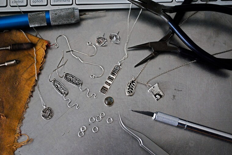 NB Designs it is a one woman show based in lovely Pasadena California. From the design, fabrication, oxidizing, finishing, photography, copy writing and shipping I do it all by hand. I consider my pieces to be more art/fine silver sculpture than jewelry. My work reflects my interests, so there is a lot of science, writing and some other random interests/obsessions thrown in the mix too. I am a self taught artist and am still learning.