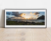 5 out of 5 starsFrom start to finish this purchase was truly outstanding. The breathtaking photo of a sunrise view from Makapu’u beach park was a major selling point, but the process of how the panoramic photo was shipped, photo was securely boxed in a flat position as to insure the photo would not have any creases in it, unlike other shipper’s who roll their photos which can sometimes cause a dent in the photo paper, this seller truly takes pride in the quality of their product and was a wonderful bonus. Awesome photo, quality control in shipping equals an exceptional experience that I’d gladly do business with them again. Mahalo, Aloha nui loa.