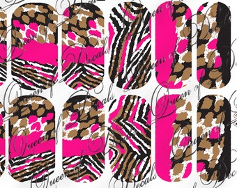 Neon Bright animal print Nail art water decals