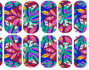 Bright tropical leaf print Nail art water decals