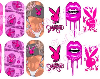 Designer inspired Nail art water decals pink bunnygirl