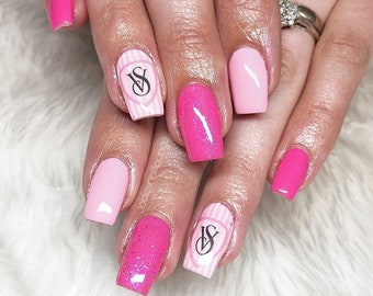 Designer inspired 'Vics secrets' style Nail art water decals (love pink)