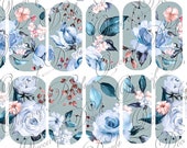 Floral Print 'Pales blues & pink' pattern full cover Nail art water decals