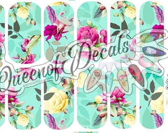 Minty floral print Nail art water decals