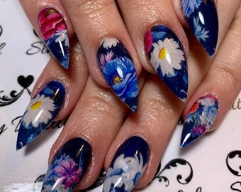 floral print NAVY multi pattern Nail art water decals