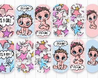 Super Cute baby shower/gender reveal Nail art water decal