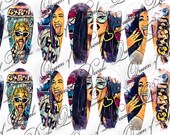 Abstract animal print/colour block Nail art water decals