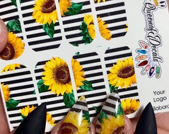 Sunflower & Stripes Nail art water decals