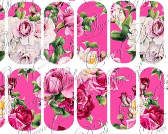 floral print 'Bed of Pink Roses' floral pattern Nail art water decals