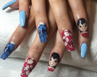 Cute 'Lilo, Stitch and tropical print' Nail art water decals
