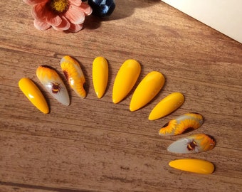 Bumblebee and Sunflower Yellow "To Bee" press on nails, fake nails, gel nails