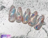 Prensa pintada a mano sobre puntas de uñas y joyas de resina hechas por Nails Jericho a la venta.