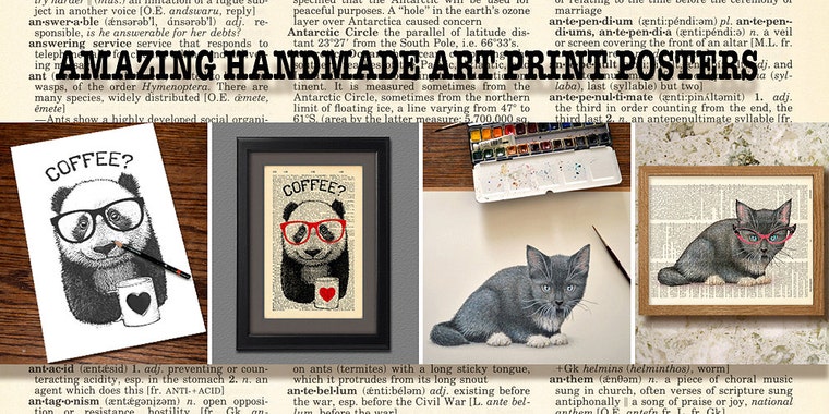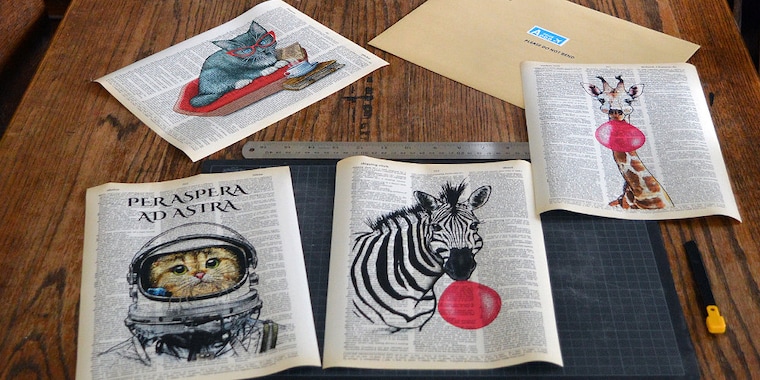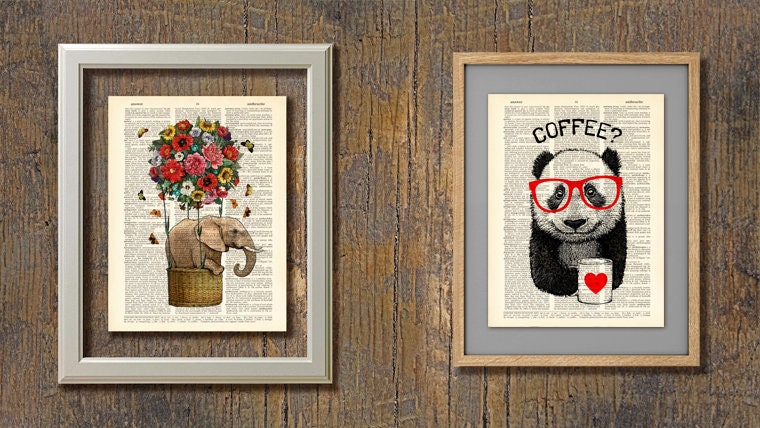 New Life of Old Books. All prints are made from my original artwork. Unique illustrations printed directly on authentic vintage dictionary page.