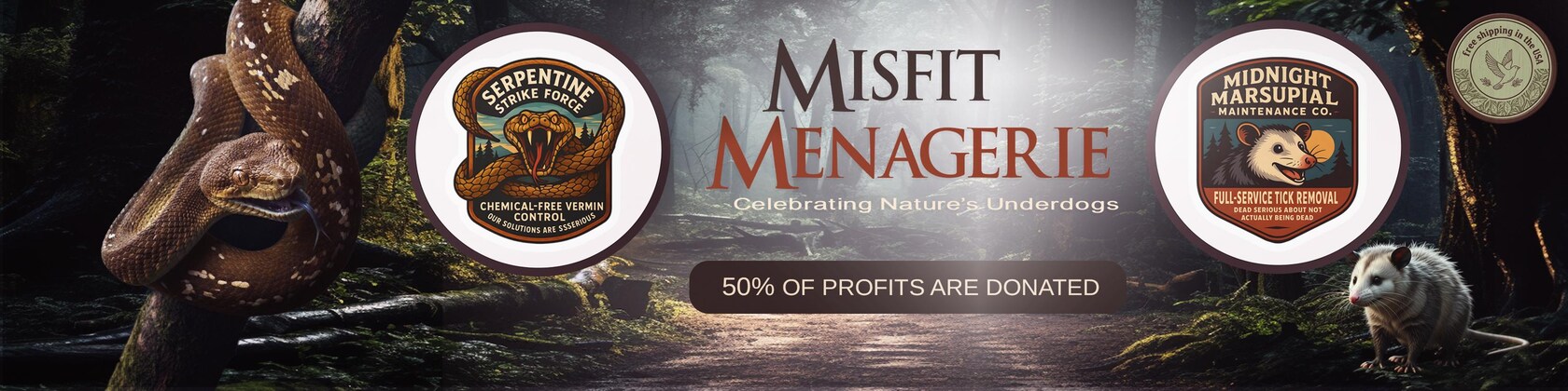 Misfit Menagerie is a nature-inspired shop celebrating the world’s most misunderstood animals by imagining them as bold yet humorous professionals advertising their own services. Our original wildlife artwork appears on high-quality stickers, mugs, and t-shirts designed for animal lovers, conservation supporters, and anyone who appreciates clever nature humor. Every purchase goes beyond merch — 50% of our profits are donated to Nature's Educators, a wildlife education organization in Florence, Colorado dedicated to teaching respect, conservation, and coexistence with native animals. When you shop Misfit Menagerie, you’re supporting wildlife education, ethical giving, and small-batch creative design — while giving nature’s underdogs a voice. If you would like to learn more about nature's unsung heroes, check out our book called Misfit Menagerie on Amazon!
