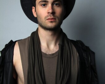 Brown Scarf Burning Man Infinity Scarf Necklace / Festival Wear / Mens Boyfriend Gift / Unisex Mens Long Necklace