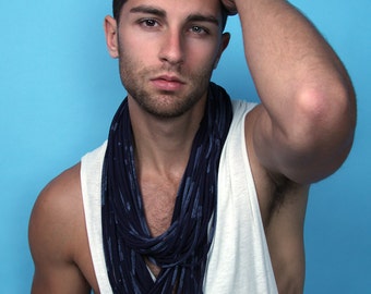 Navy Blue Striped Chunky Scarf Necklace / Mens Gift Idea / Boyfriend Husband Birthday Gift / Spring Scarf / Burning Man Festival Fashion