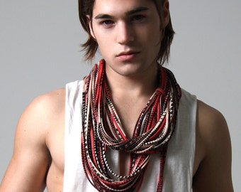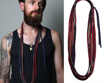 Mens Necklace Gift for Men Boyfriend Gift Burning Man Festival Hippie Necklace Birthday Gift Mens Scarf Necklace Red Statement Necklace