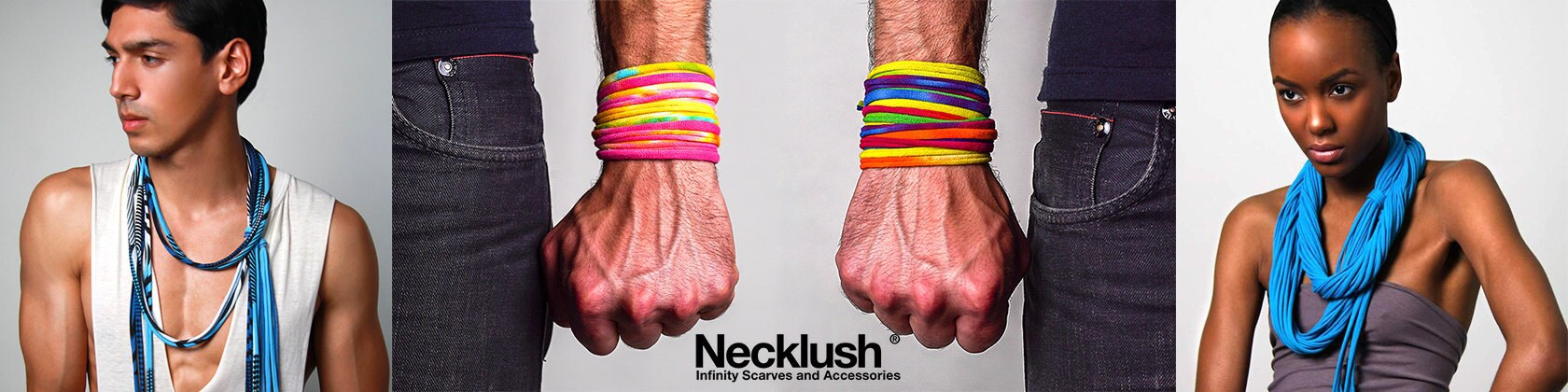Necklush is a patented infinity scarf necklace hybrid developed by Stephano Diaz and Troy Mattison Hicks originally in Brooklyn NY - now in Athens GA. We first started selling our Necklush scarves on the streets of NYC in 2008. The results were instant and over the top. People go nuts for Necklush! Our pieces are spotted all over the world now, its always exciting to hear how far our scarves will travel.