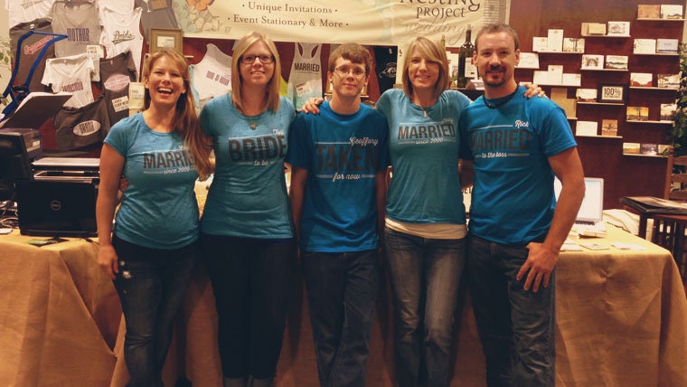 It all started when Corinne & Kelly made some special personalized gifts for their friend Trishia's Baby Shower. The personalized baby bodysuits were such a huge hit that the adults wanted shirts in their sizes. They agreed to create them and sold several shirts. Neither Corinne or Kelly remember saying, "let's start a business," but they do remember picking the name. They were on the phone with one another throwing out words and phrases and while Corinne was checking domain names, she'd just finished typing in an idea when Kelly said, "Nesting Project." That was the exact name Corinne had just typed in and it wasn't taken. It was obviously meant to be and that was it! Nesting Project was to be a "Life Event Design & Print Company". What is that you ask? They did too...anything you would take a moment out of your life to celebrate is a Life Event and since they and all of their friends were either getting married, attending weddings, having babies, birthdays, or organizing reunions, etc., the inspiration was easy to find. Both work hard to grow the business while raising a family and the team has been so blessed with the addition of Toni and Geoffory in 2013. It's a challenge to attend to children, answer convos, print shirts, work with brides, design and still be sane so it seems that things have just always happened at the right time. The Nesting Project team continues to create new and fun products for every "Life Event" while doing many projects to raise money for several causes including childhood cancer & breast cancer.