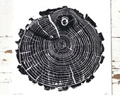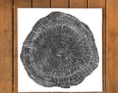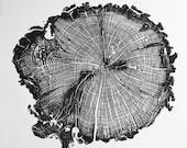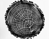 Several years ago our next door neighbours had a huge oak tree cut down by mistake. The tree removal company had the address wrong, and it wasn't caught in time. The tree was over 100 years old, and it was a huge disappointment to them and us. The wood was cut up and our neighbours kept it in their yard. A couple years after that, they moved to Vancouver Island and gifted us the rest of the wood. It was then that Darren had the idea to try making a print as a way to create some kind of memory and gift for them. He had seen something similar and wanted to try it. Our very first print was made solely by Darren (now I, Pam, have joined in on the process) and he only made 4 prints. One was mailed to Vancouver Island and arrived for Christmas morning on our former neighbour's doorstep.