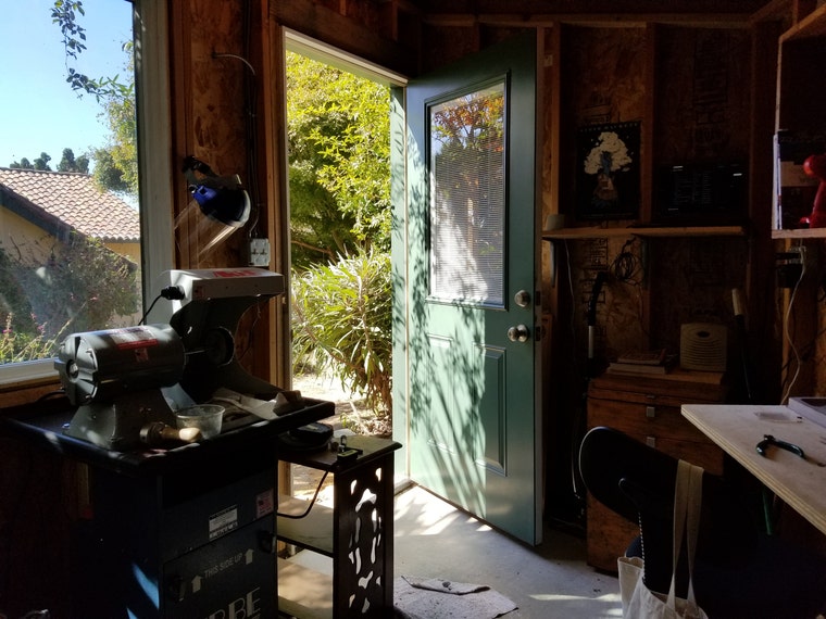 I spend hours and hours in my studio, and I don't feel the time, I just crank up the music and work. Looking out the window I see the beautiful California nature and I feel lucky.