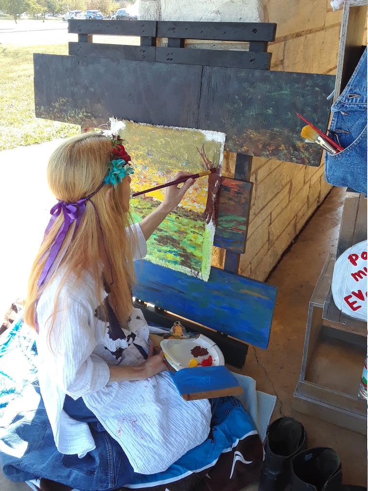 As a thank you for ten years of staying in business, over a hundred pieces of clothing have been donated to local thrift stores. And over fifty original pieces of art and fashion were gifted to my favorite Starbucks locations, favorite radio stations and shared with the dedicated fans of the Sunday park paints!