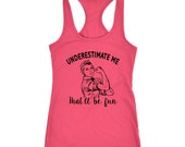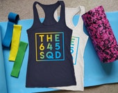 A specialist with printing our Tank Tops, Crop Tops, Cropped Hoodies and other unique garments like the New Era Hooded Racerback Tank.