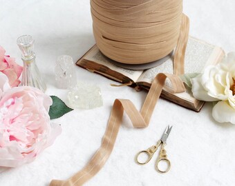 Caramel Beige Fold Over Elastic Satin Panty and Bra Elastic