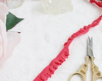 Pretty Dark Pink Ruffled Cotton Lace Elastic for Lingerie Bra & Panty Making 14mm