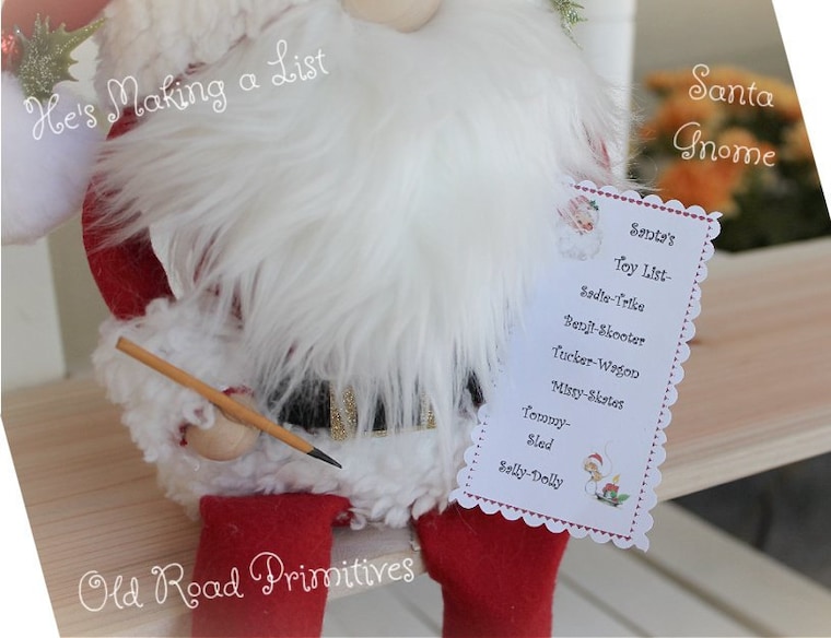 Santa gnome with printable "Santa's Toy List"!