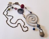 "Spare Parts jewelry is a combination of found objects, stones, wire, old hardware, upcycled beads...whatever bits and pieces I can find. Everything is handmade by me at a bench in the garage with cool hammers and pliers and a really old drill press."
