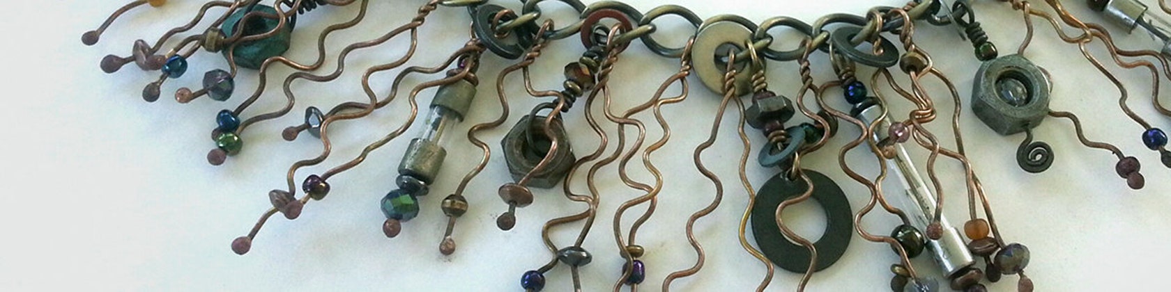 I spent 23 years working as a building trades pipefitter. During that time, I attended school at night, earning a BFA in printmaking and ceramics. When my career in construction ended, I was working with clay, sometimes combining found objects and materials with my ceramics. Eventually the found objects took over and I began to fashion wearable pieces...and then, jewelry.