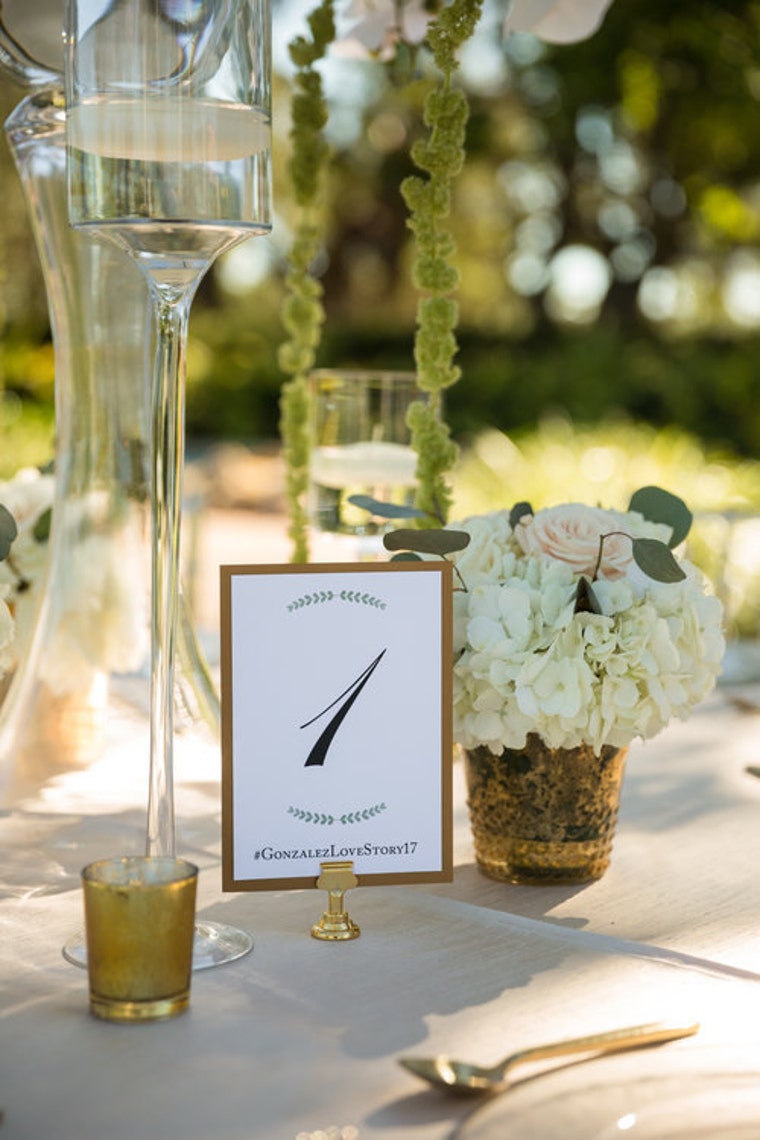 Simple Table Number Printed on White Stock with Ivy Leaf Detail printed in Sage (Wedding)