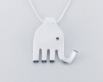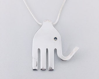 ELEPHANT Silverware FORK NECKLACE/Slide/Pendant Antique Silverplate Spoon Jewelry Flatware Choice of Length 2mm Snake Chain Gift #E1108
