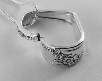 1950 DAFFODIL Silverware Spoon HEART NECKLACE/Slide/Pendant Antique Silverplate Jewelry Flatware Choice 2mm Snake Chain Valentine's Day