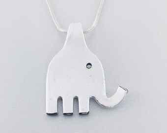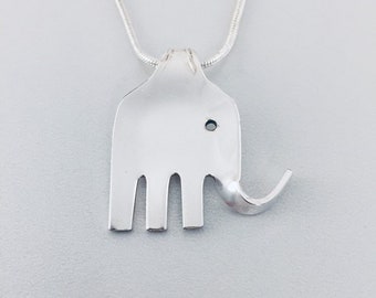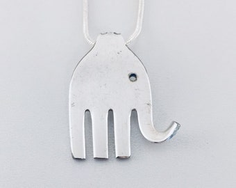 ELEPHANT Silverware FORK NECKLACE/Slide/Pendant Antique Silverplate Spoon Jewelry Flatware Choice of Length 2mm Snake Chain Gift #E1102